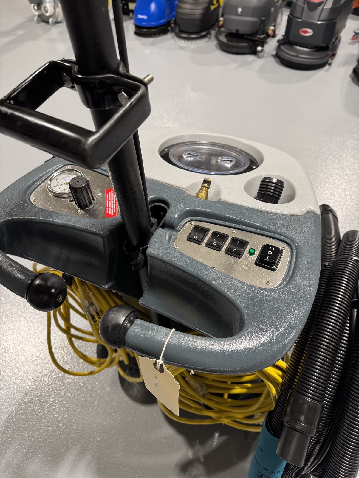 • New items with this unit include a switch plate, tank lid, vacuum and solution hoses, and two new power cords.