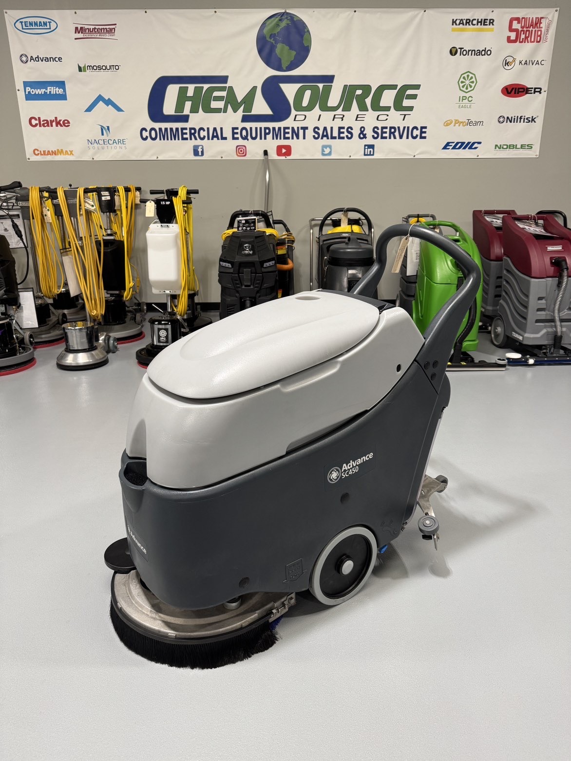 The Advance SC450 Walk-Behind Floor Scrubber is a reliable, user-friendly cleaning solution designed for efficient daily floor maintenance in commercial environments. Built for simplicity and durability, this scrubber delivers consistent cleaning performance while remaining easy to operate, making it ideal for schools, healthcare facilities, retail spaces, and industrial settings.