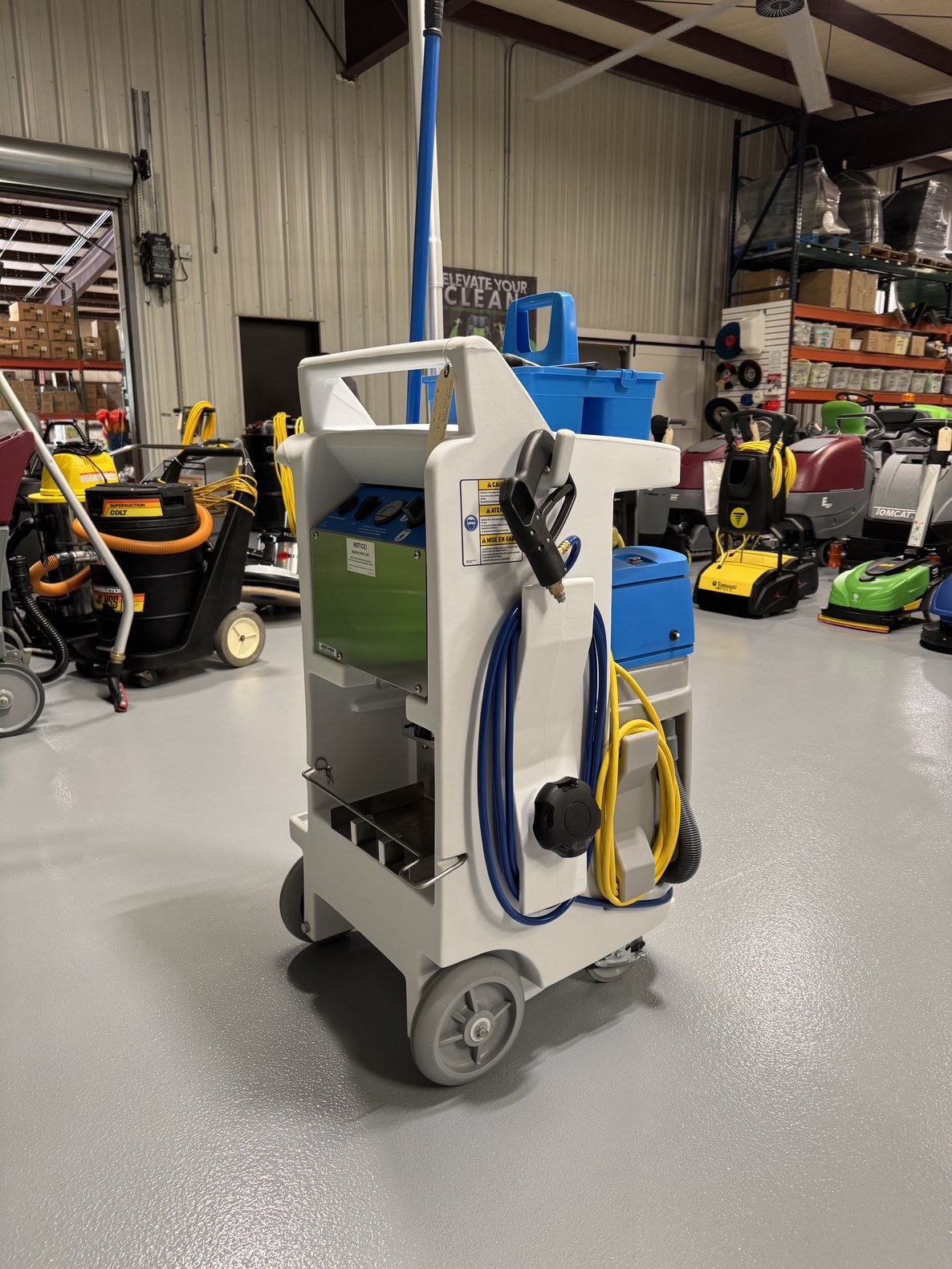 At the core of the system is a closed-loop chemical dispensing setup that ensures accurate dilution of ultra-concentrated cleaning products. The built-in spray wand delivers 90 PSI of pressure, evenly applying solution to surfaces for thorough coverage. After application, the integrated wet vacuum quickly removes dirty solution, leaving floors and surfaces clean, dry, and ready for use.