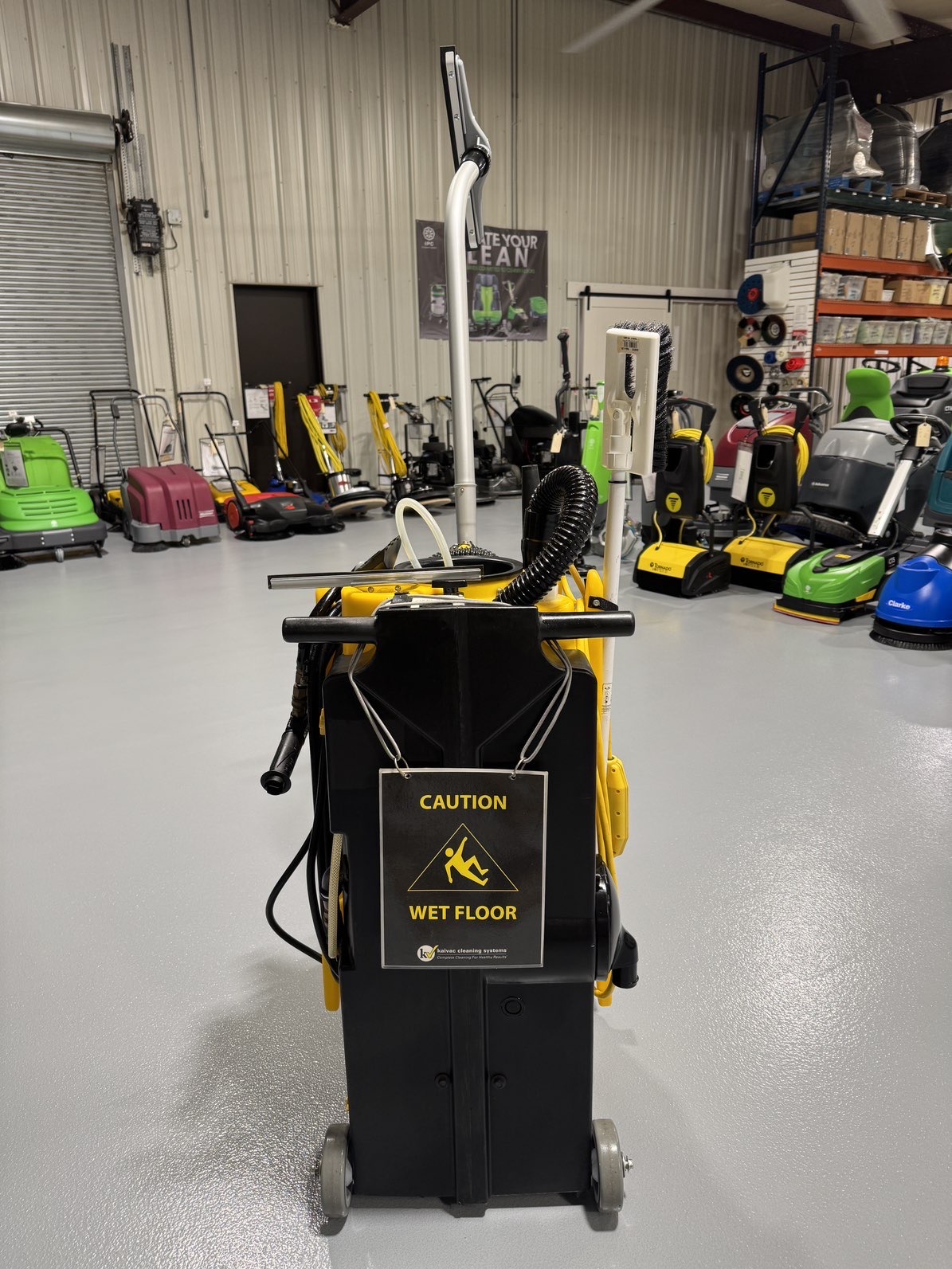 Ideal for schools, healthcare facilities, gyms, and commercial buildings, the Kaivac 1250 combines high-pressure application with powerful wet vacuum recovery to remove soils, bacteria, and contaminants from floors, walls, fixtures, and grout lines. Its all-in-one system eliminates the need for traditional mops and buckets, helping prevent cross-contamination and improving overall facility sanitation.